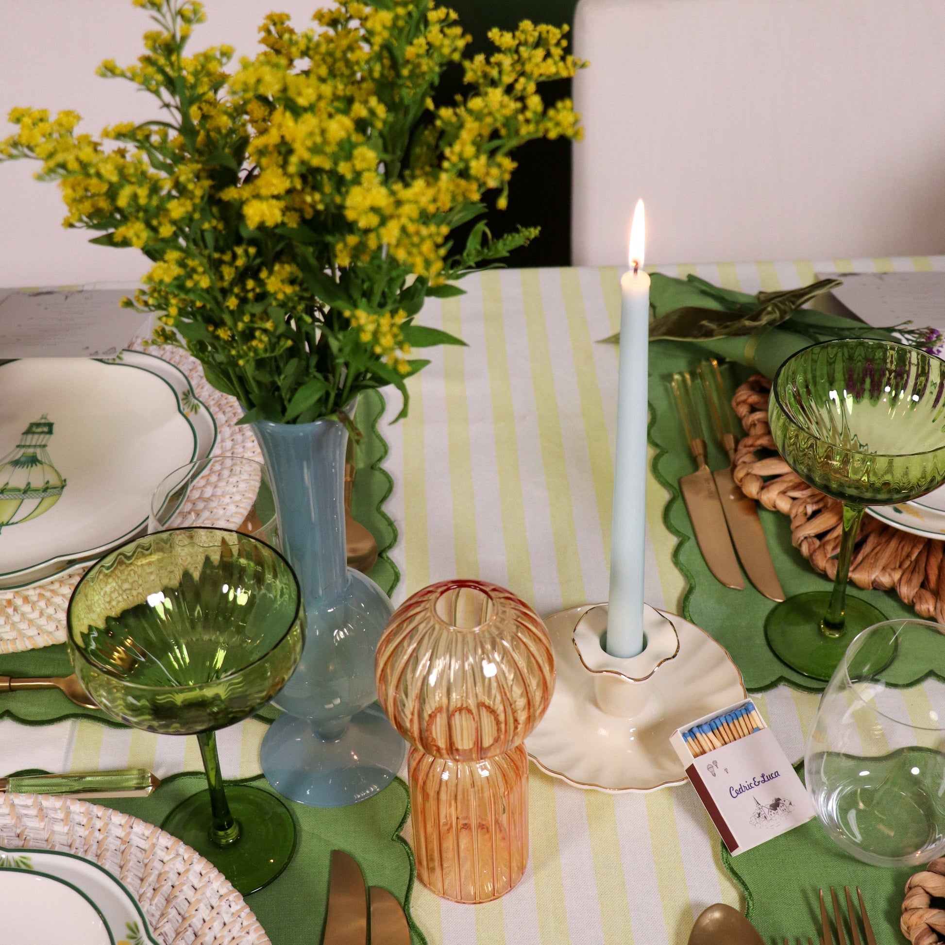 Delicate as a cloud, this taper candle boasts a serene baby blue hue, bringing a calming aura to your space.