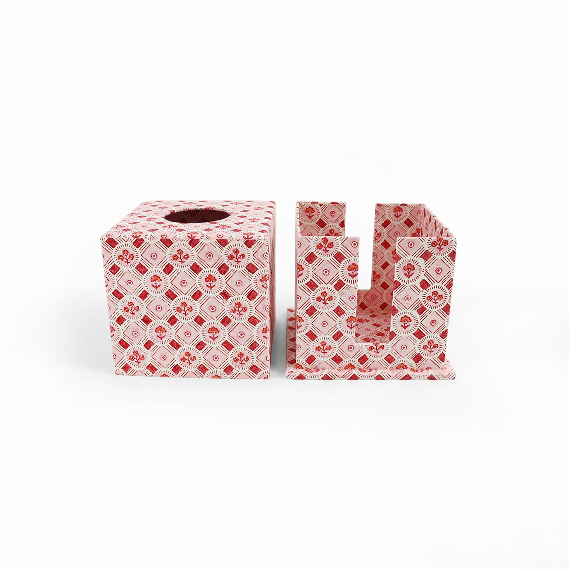 BLOCK PRINTED TISSUE BOX - HOLIDAY EDIT SPRING BLOOM RED