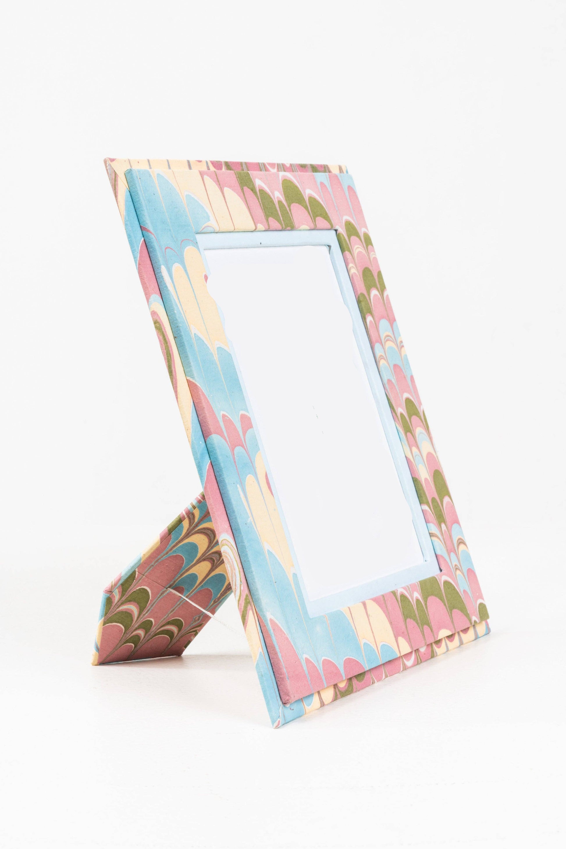 Hand-Marbled Picture Frame in Lilac Blues, 4x6
