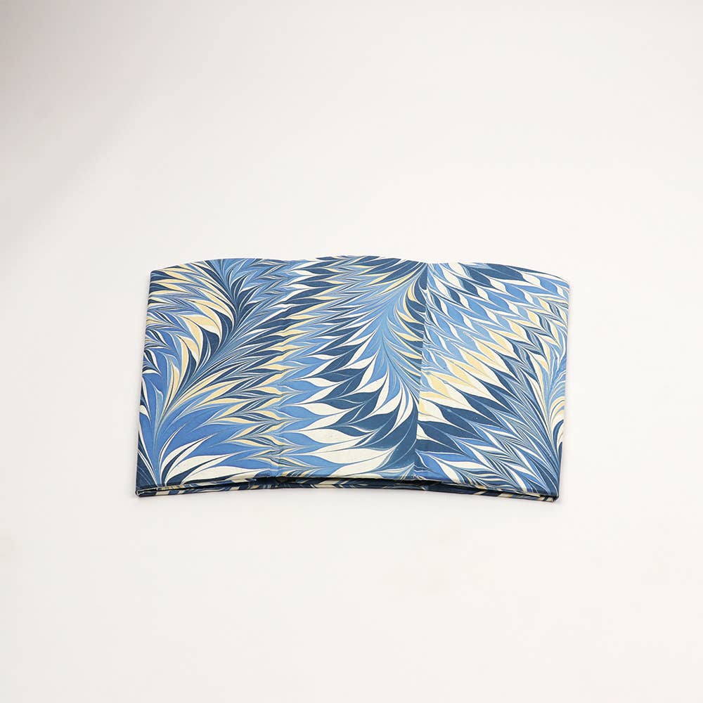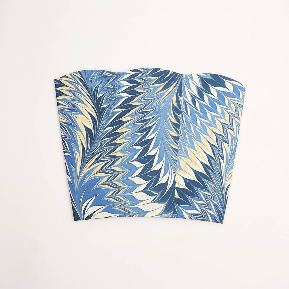Hand Marbled Scalloped Collapsible Basket - Indigo Feather