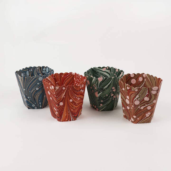 Hand Marbled Small Scalloped Basket - Green Fire Whirl