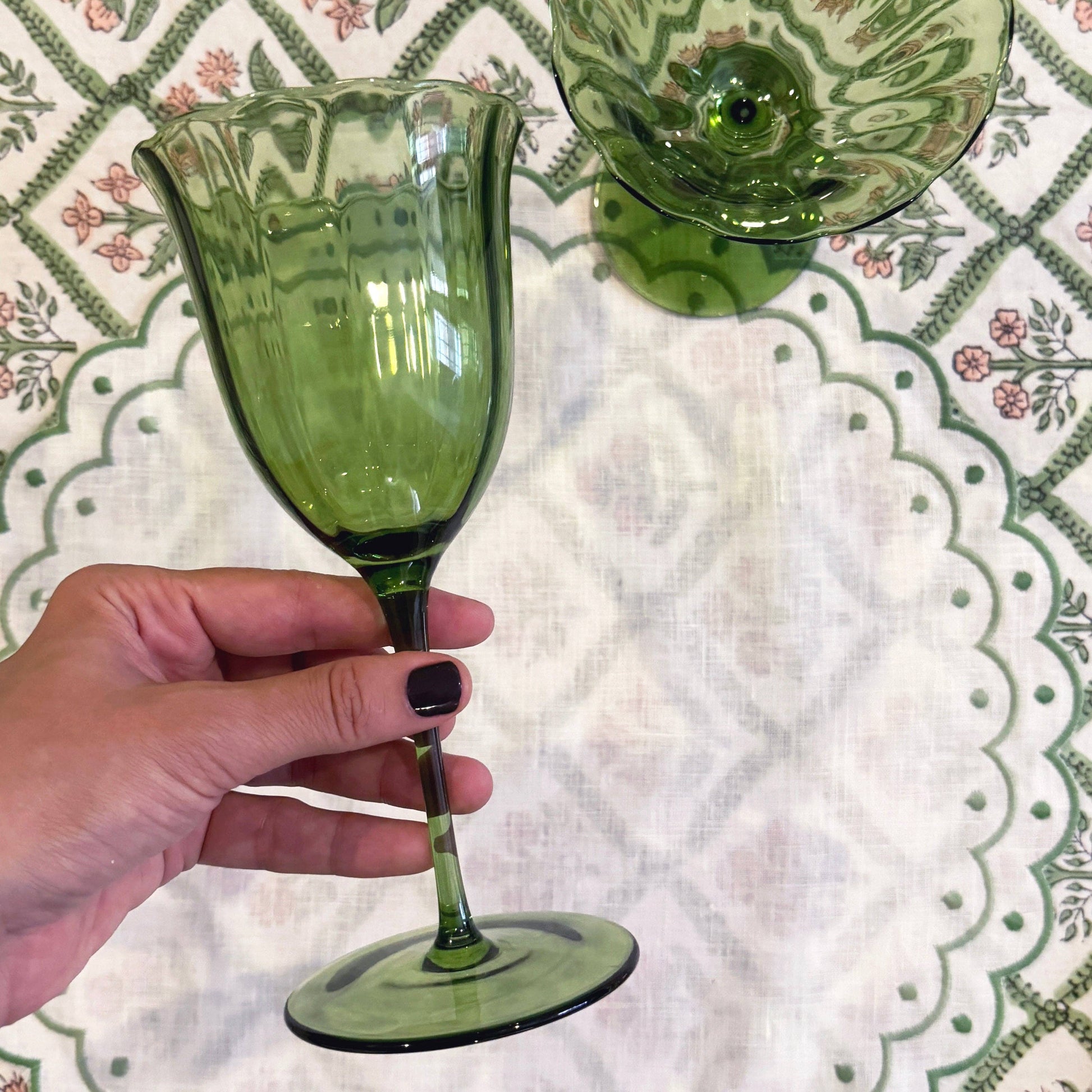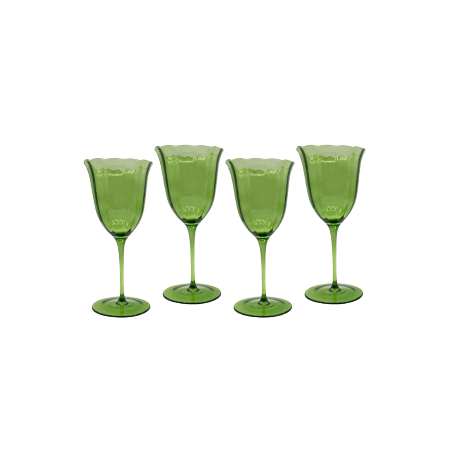 Our chic green water glasses are elegant and versatile. Made of delicate glass they can elevate any table. (set of 4)
