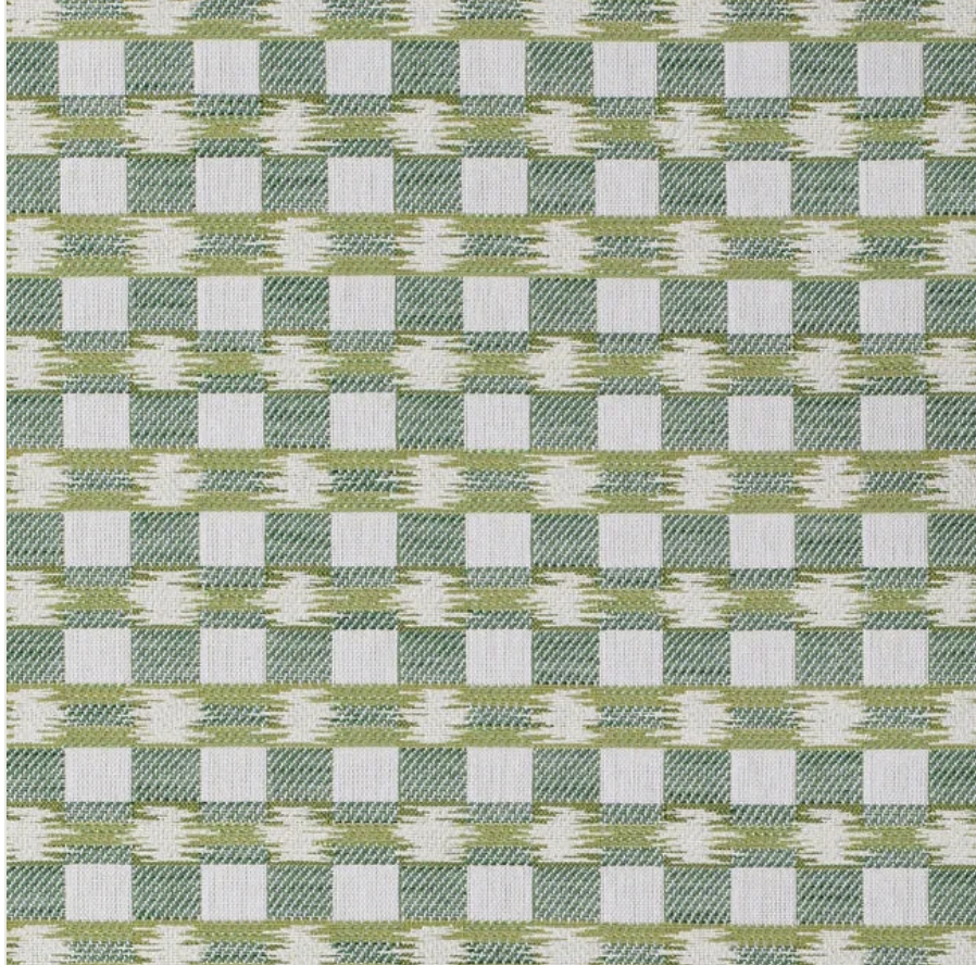 6 available - sold individually. Newly recovered in designer fabric and green welting.