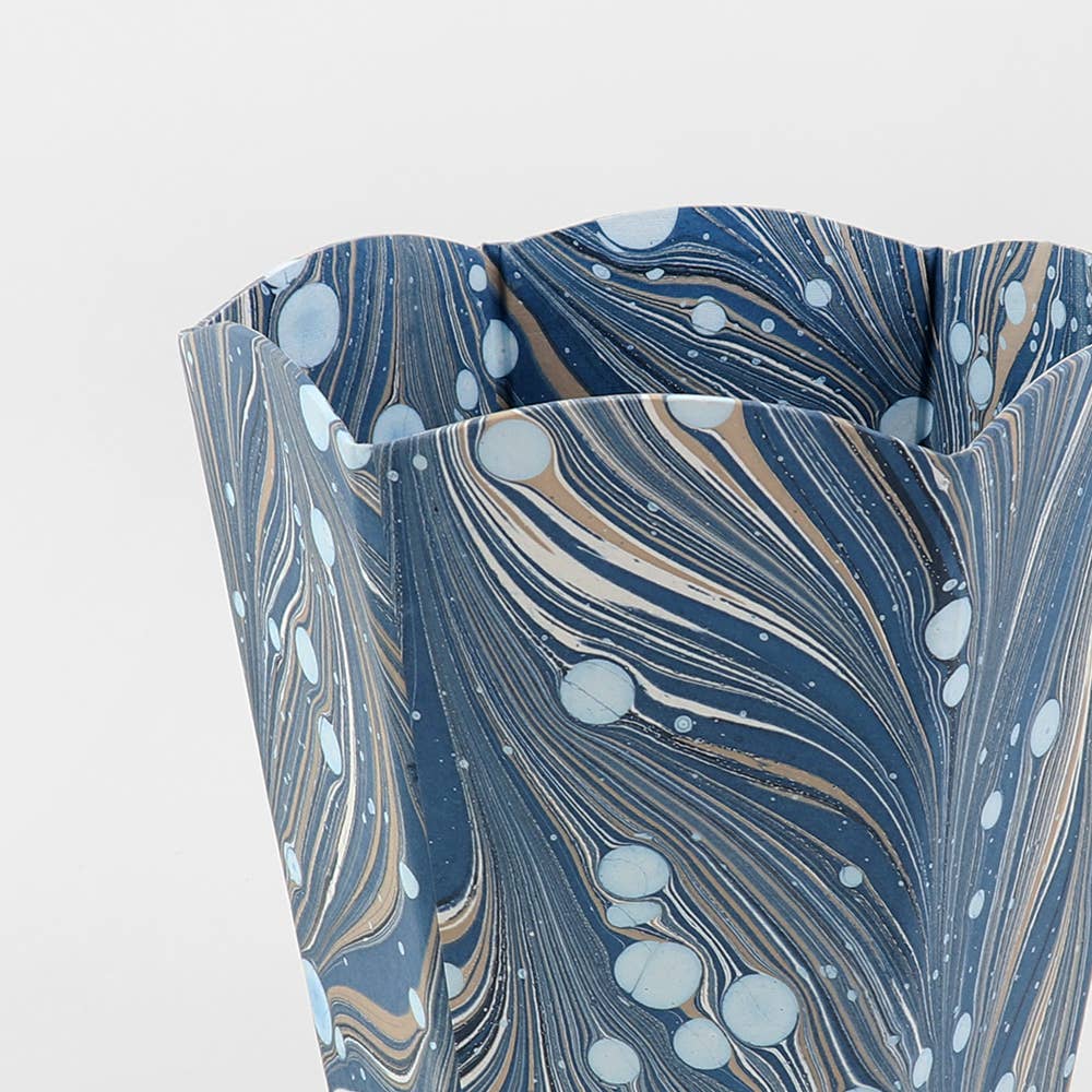 MARBLED SCALLOPED COLLAPSIBLE BASKET - FIRE WHIRL BLUE
