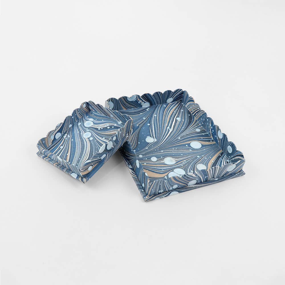 MARBLED SCALLOPED TRAY WHIRL BLUE LARGE