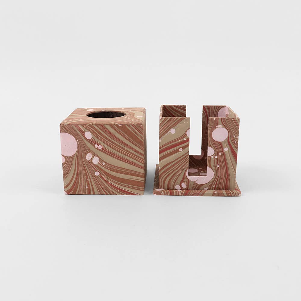 MARBLED TISSUE BOX FIRE WHIRL - OCHRE