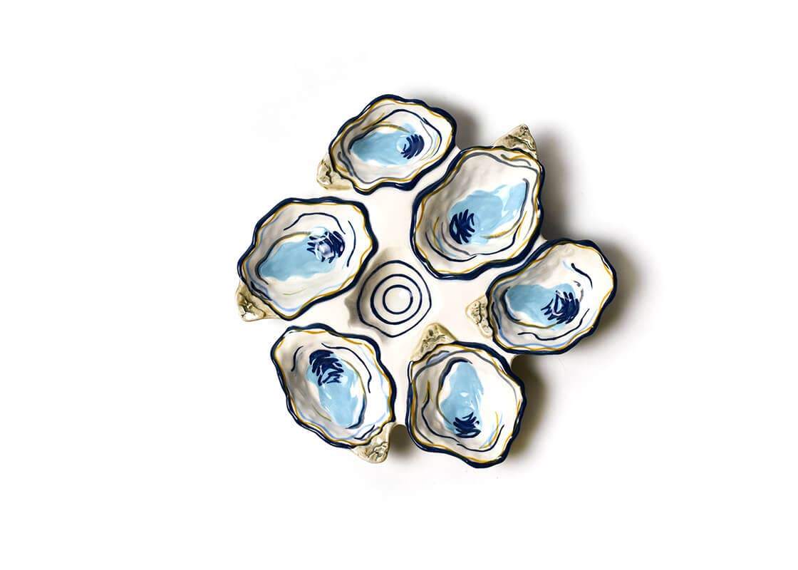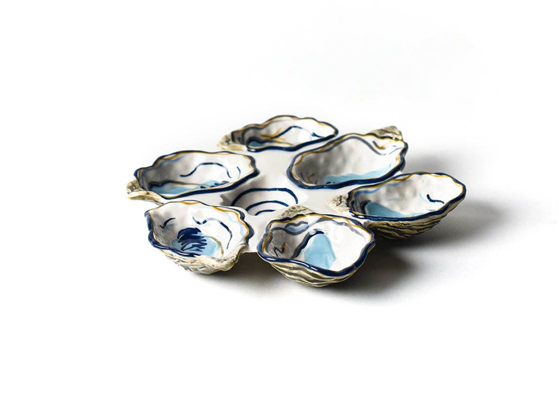 Transport your dining experience to the bay with the Oyster Half Dozen Platter. This serving piece is specially made to hold six oysters, and it includes a bowl in the middle for your favorite garnish. This platter can also be used to host chips and vegetables at summer parties. This unique design is sure to be the talk of the party! Every Coton Colors piece comes to life through the work of our design team in Tallahassee, Florida. We artfully design our products from start to finish to inspire you to never miss an opportunity to celebrate every day.