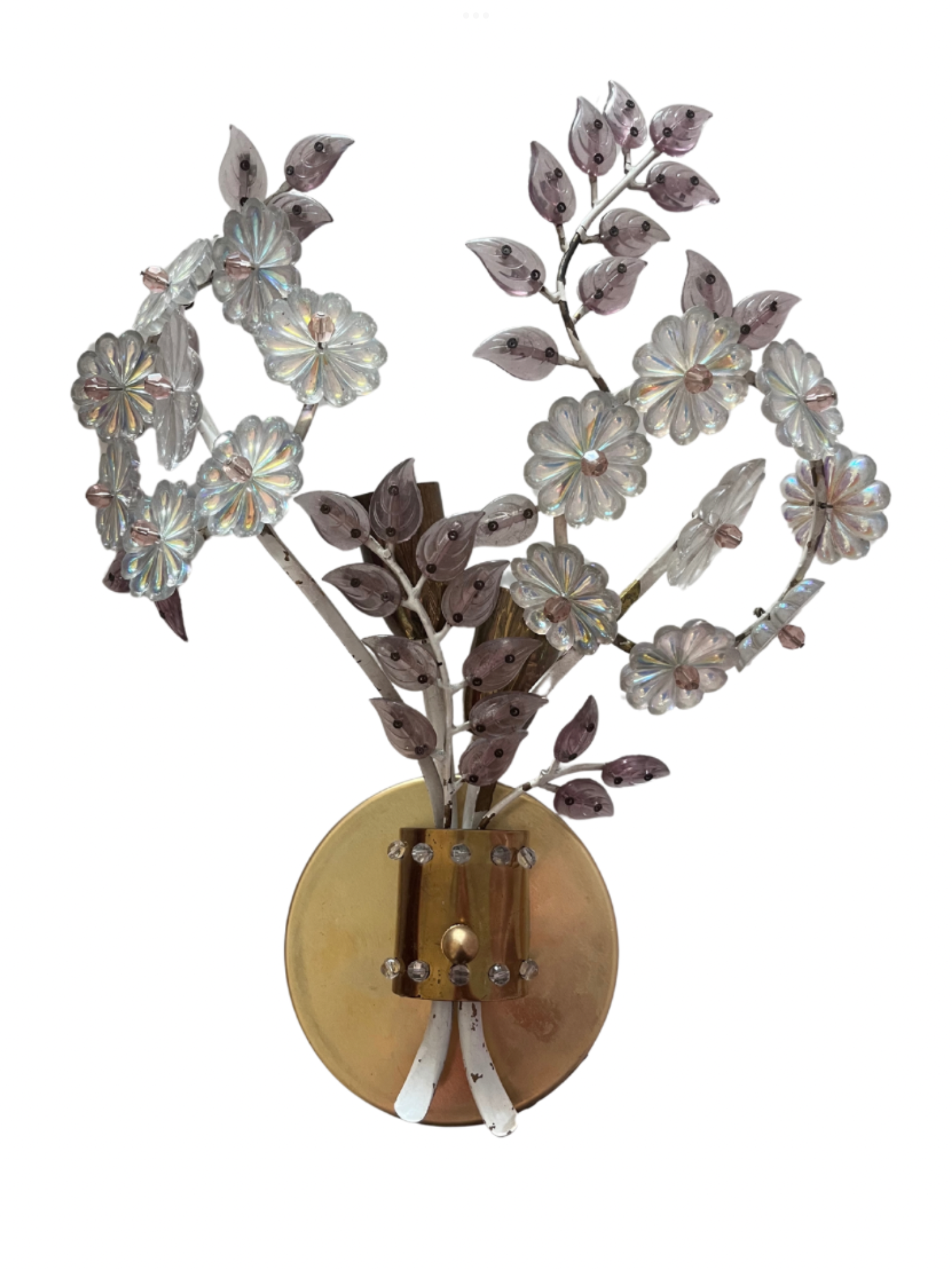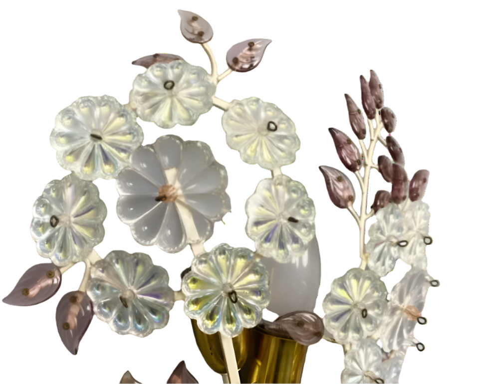 Wall Lamp with Crystal Flowers. Sold as a pair. In antique condition.