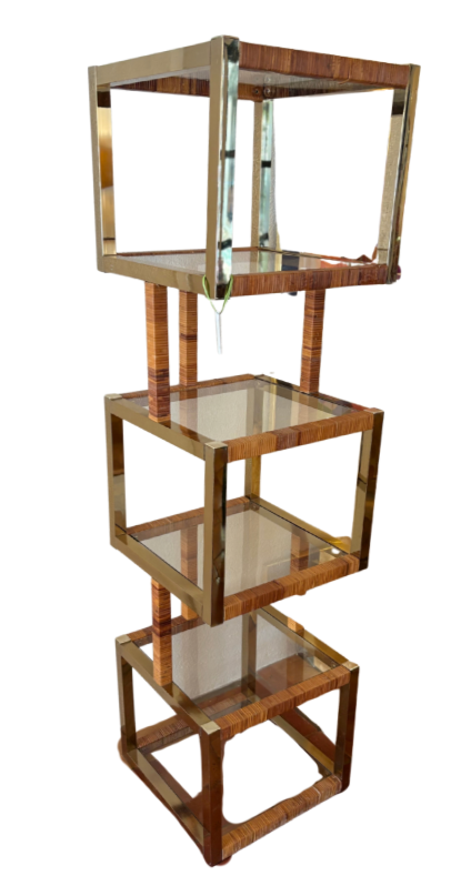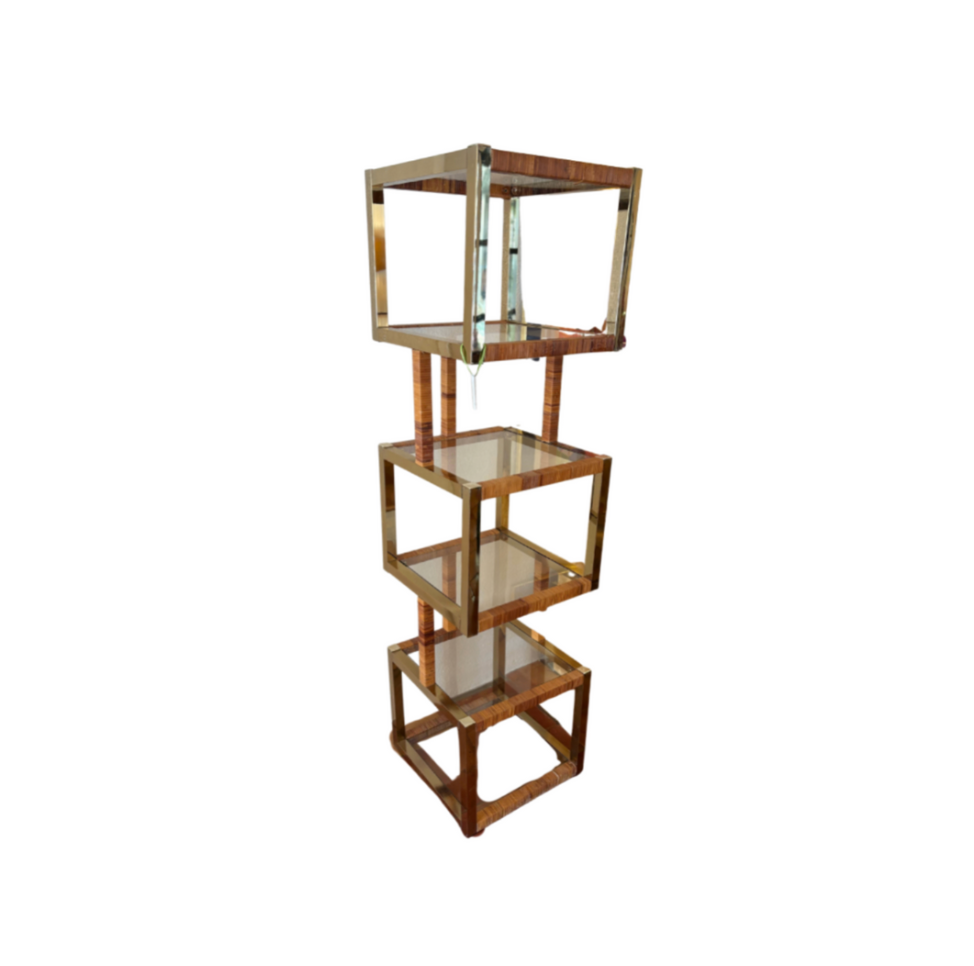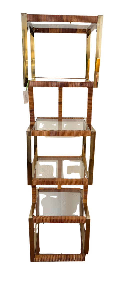 Vintage Rattan and Brass Shelf